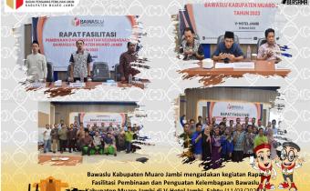 Dalam rangka pelaksanaan tugas pengawasan Pemilu Serentak Tahun 2024, Bawaslu Kabupaten Muaro Jambi gelar Rapat Fasilitasi dan Pembinaan Penguatan Kelembagaan. dilaksanakan di V Hotel Jambi yang dihadiri oleh Ketua dan Anggota Panwaslu Kecamatanda, se-Kabupaten Muaro Jambi.